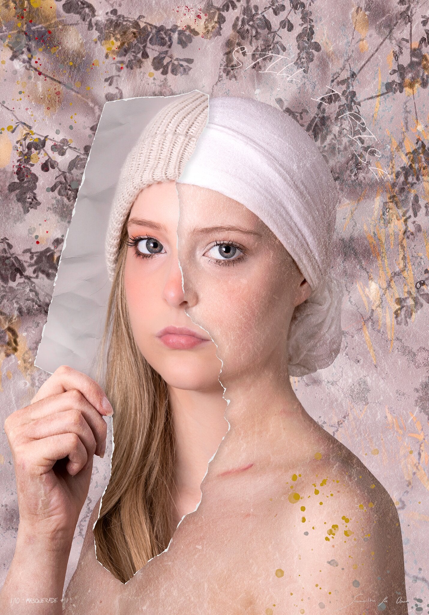 Today many people live two lives, the person they are behind closed doors and the person they are seen to be in public. Sometimes, these facades protect one from fear of disapproval, incompetence, or even hid a person trials and truths. In this artwork, the artist suggests that we should never forget that true beauty lies within, and judgement is merely an opinion. We should learn to embrace our individuality and wear our scars with pride. In this artwork, Samantha photographed her sister Leeanne as an inspiration to others about her incredible courage and self-belief.