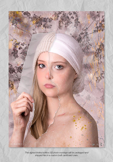 An incredible 3D, hand-assembled photo-montage of a young girl wearing a mask to help disguise her struggle with cancer.