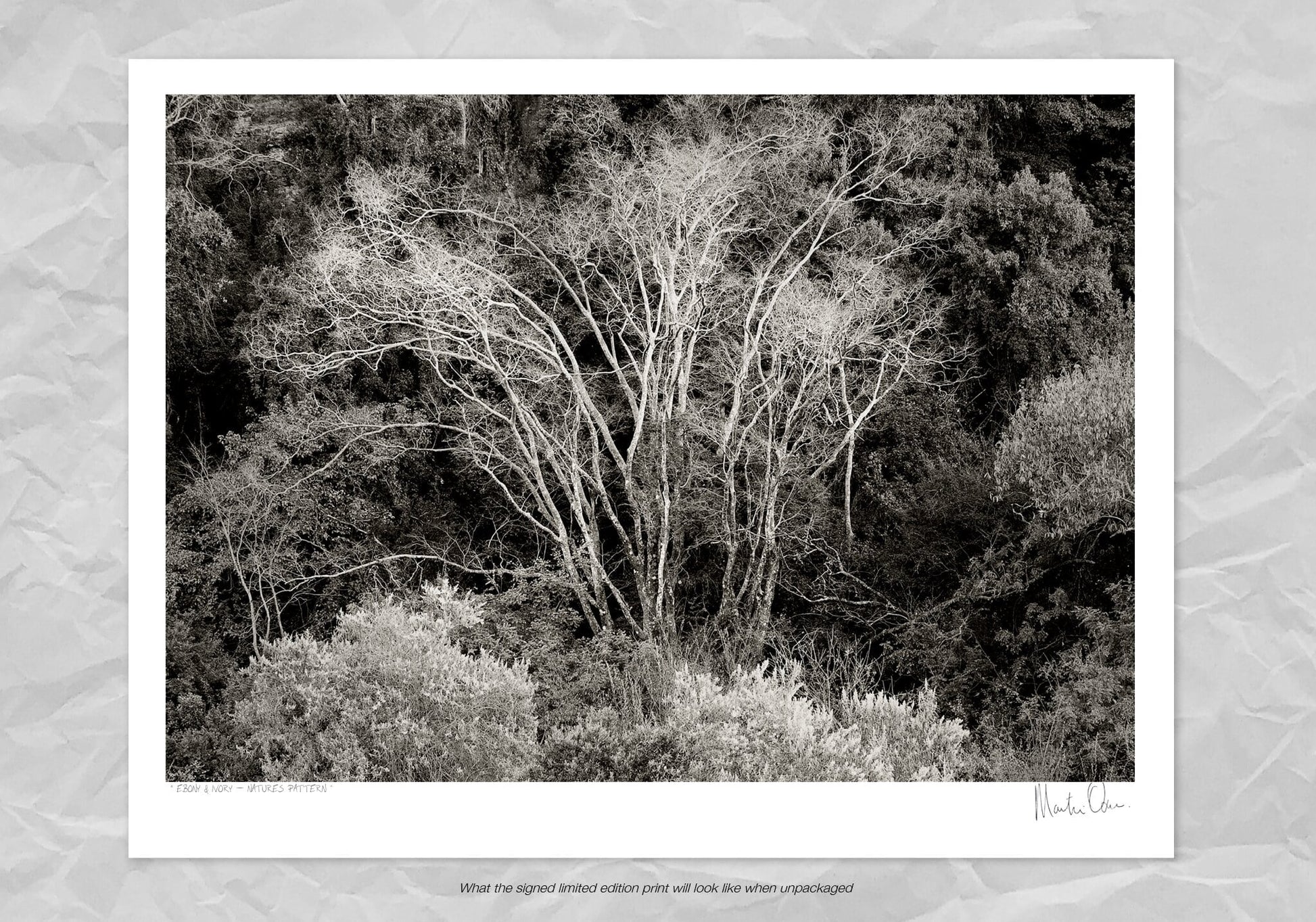 These beautiful trees in the Drakensberg were photographed on infra-red film to bring emphasis to the beautiful patterns and textures found in nature.