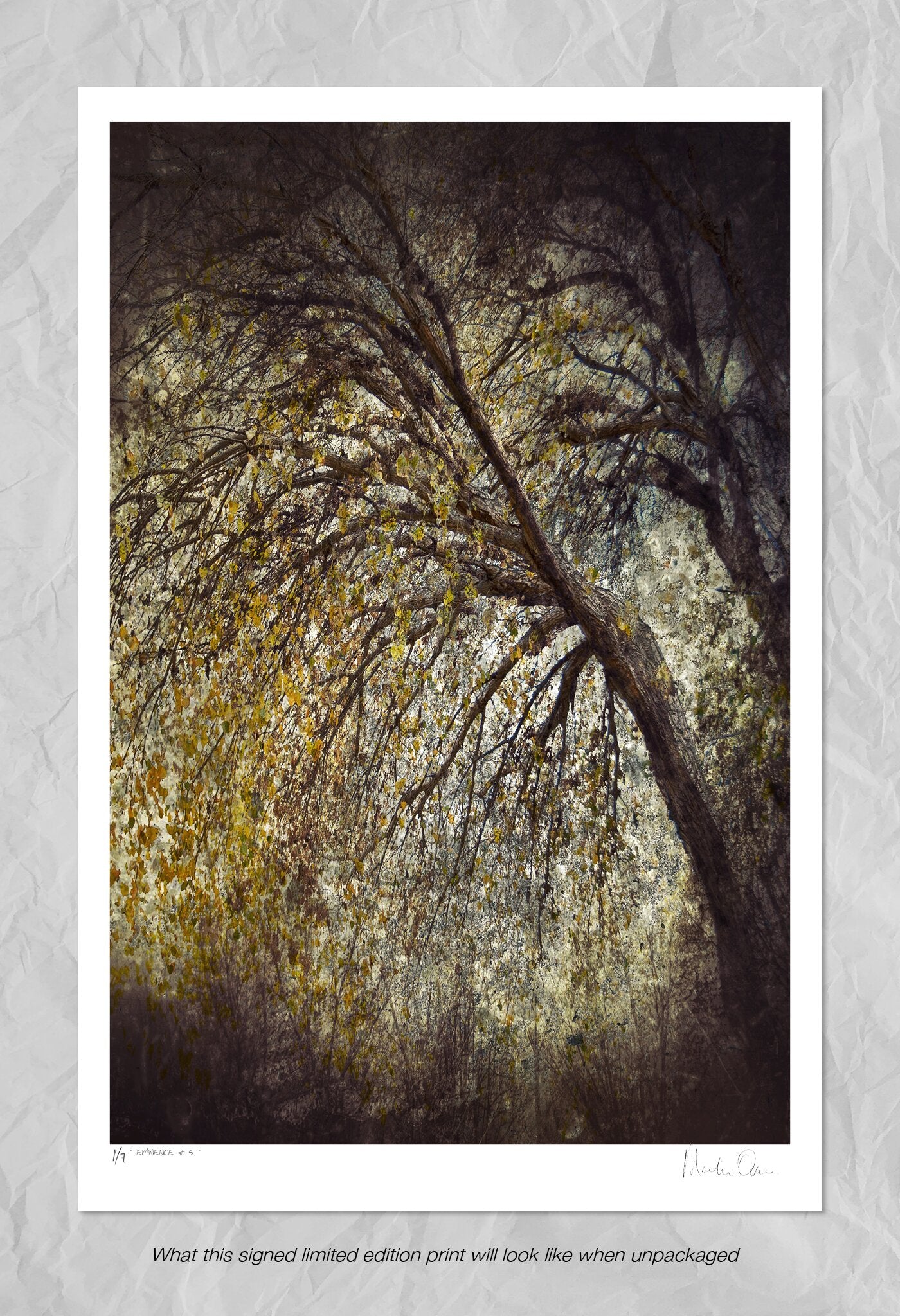 Eminence is an ethereal print collection of trees created by the artist using multiple layers and texture overlays. Although slightly abstract in approach, the prints have been created to convey a feeling of eldership, majesty and wisdom.