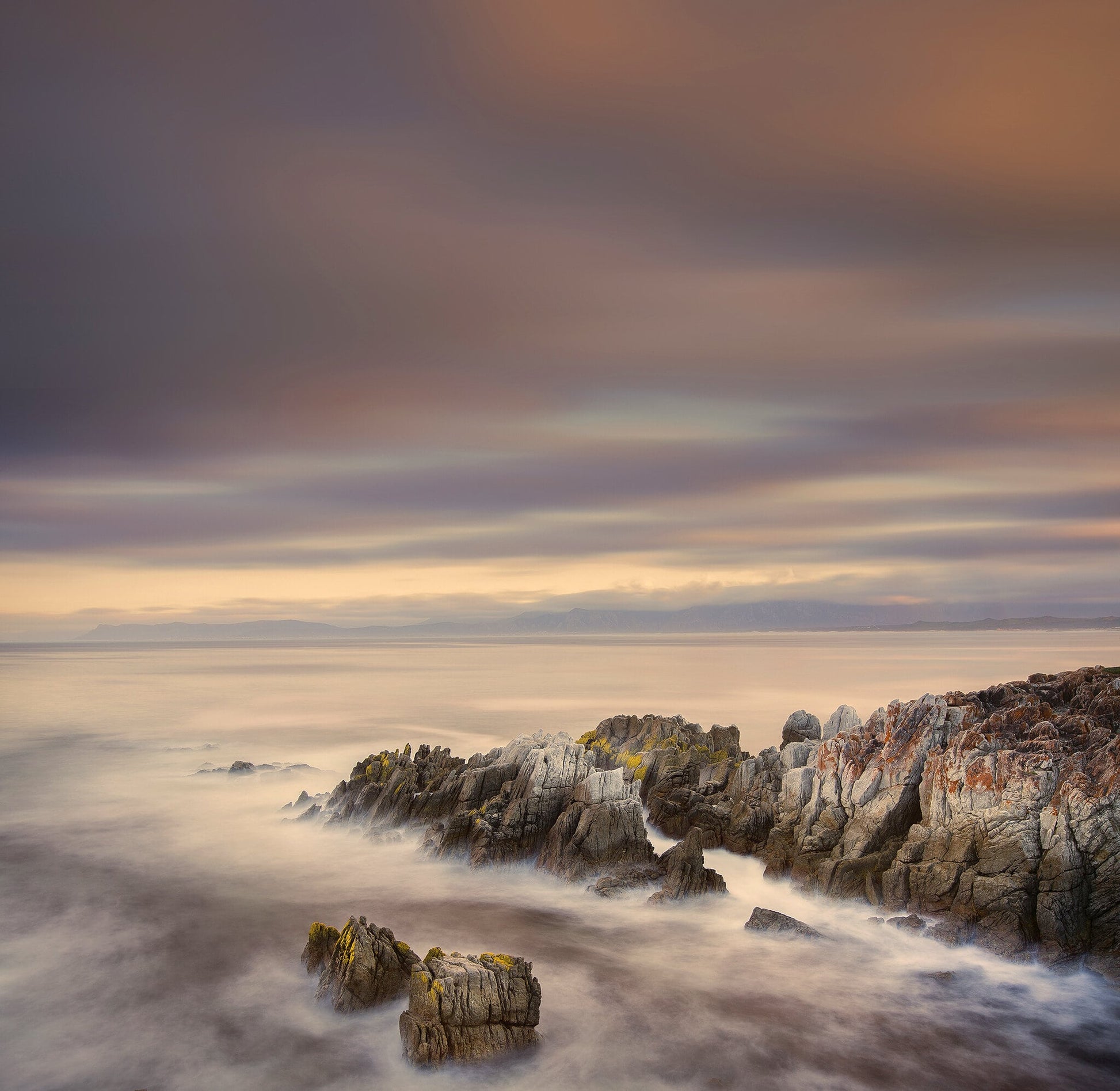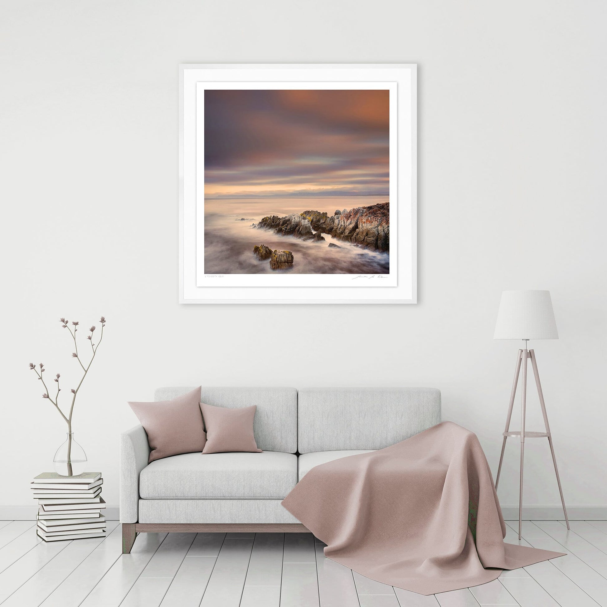 An iconic print in a minimalistic portfolio of long exposure seascape photography photographed at sunrise near the De Kelders in the Western Cape region of South Africa. This print forms part of the artists successful "Eternity" portfolio with is available in three print sizes each limited in edition: