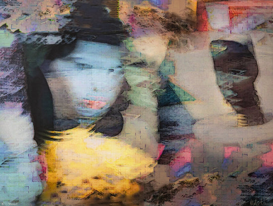 Inspired by Tretchikoff, this artwork started as a photograph of scattered cushions on a sofa. Tretchikoff's colour pallet was altered and ink was added by hand to amplify the "pixel" texture. The "Green Lady's" secret admirer can be seen in the background.