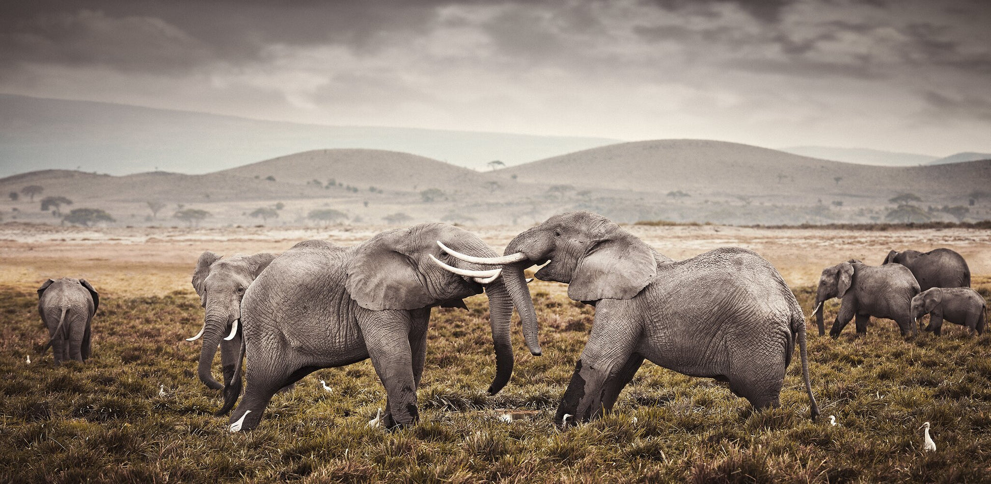 This breathtaking photograph of two elephants with their tusks locked in sparing was taken at Amboseli national park in Kenya. The print forms part of the incredible Pride of Africa collection by the late Klaus Tiedge.