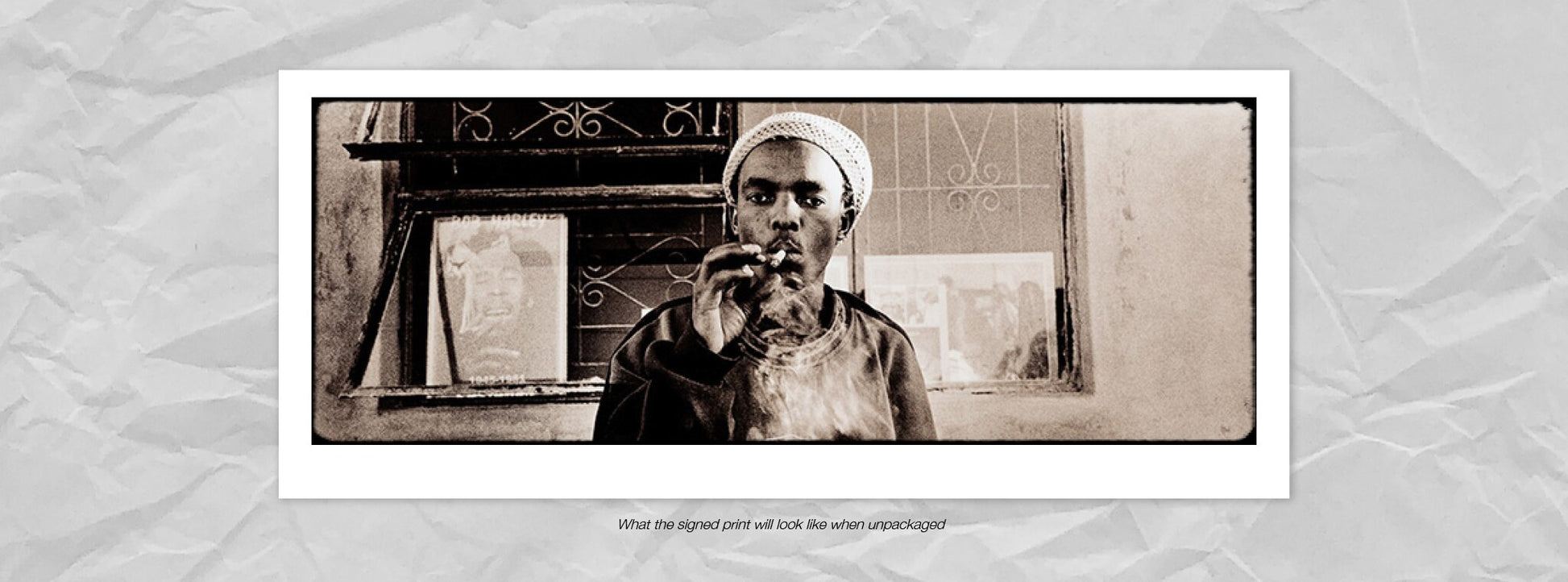 A timeless black and white litho print of a South African man photographed in a township in Cape Town by Antti Viitala.