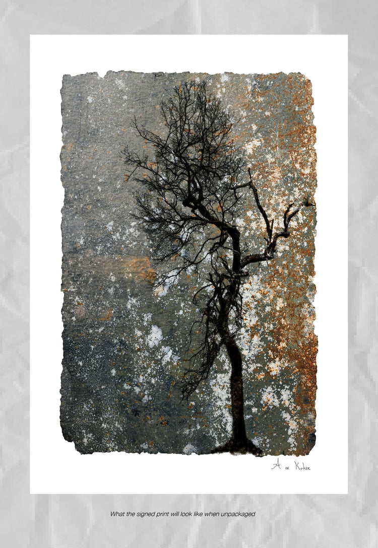 Created using a film & polymer transfer, this artwork symbolizes standing strong during a dead season only to bloom again.
