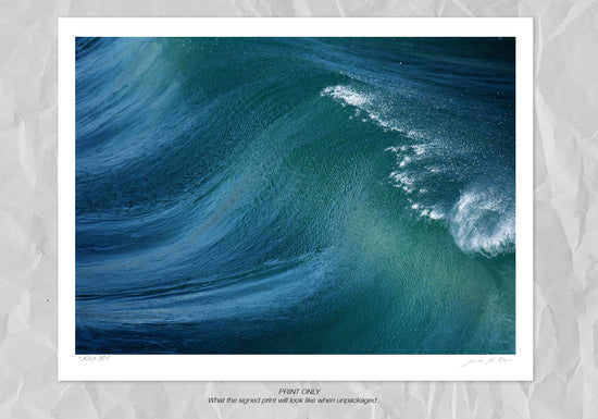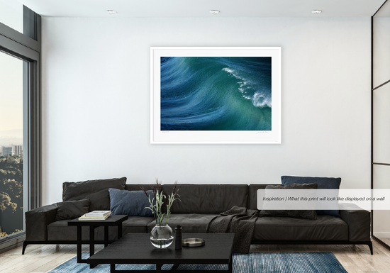 This framed print forms part of a collection of brilliant ocean photography in colours of blue and aqua.