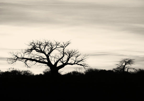 The Baobab is one of Africas most iconic trees, this superb black and white print was photographed near the southern border of Zimbabwe.