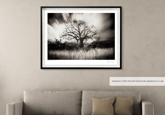 The Baobab is one of Africas most iconic trees, this incredible black and white print photographed on infra-red film was shot near the southern border of Zimbabwe.