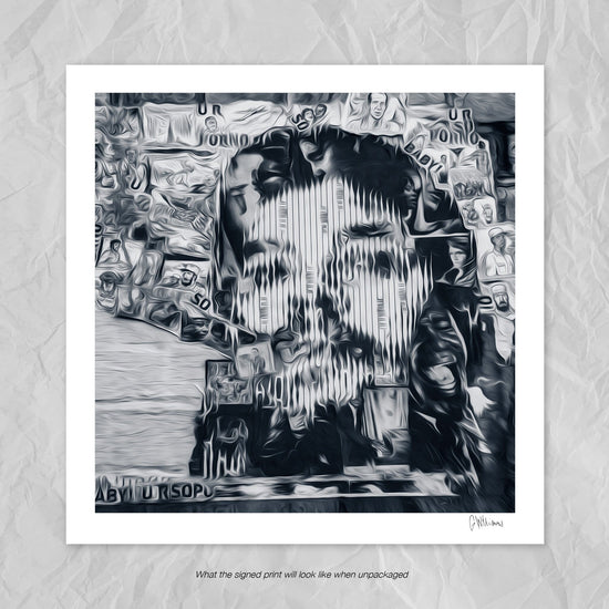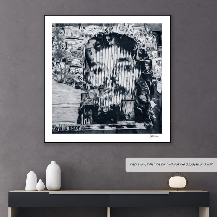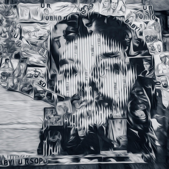 An intriguing black and white portrait inspired by graffiti. An abstract impression created through the digital art medium.