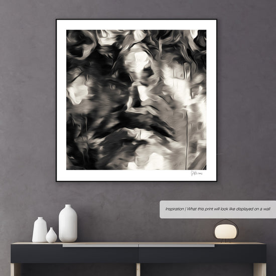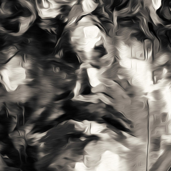 A brilliant black and white close-up portrait. A creative abstract impression created through the digital art medium.