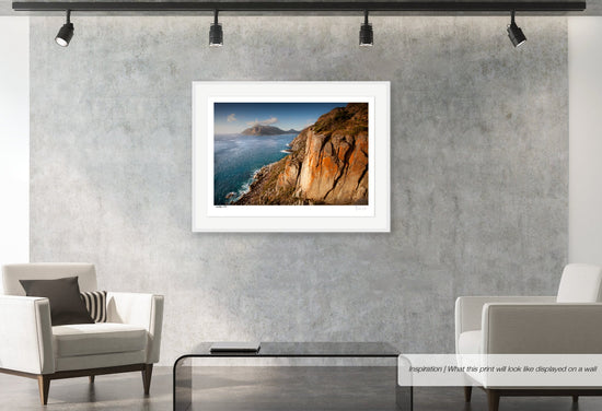 A classic print photographed by Martin Osner of the famous Chapman's Peak with the Sentinel of Hout Bay in the background.