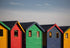 A vibrant fine art print of the iconic colourful surf huts in Muizenberg, Cape Town.