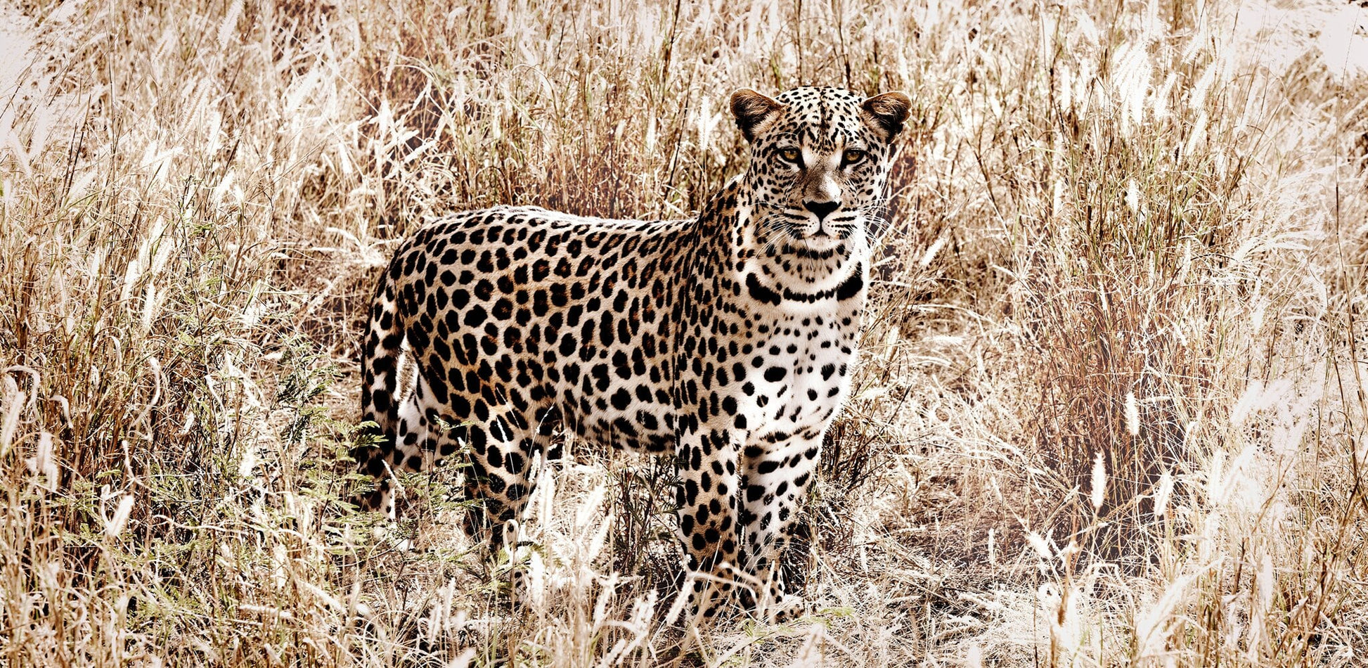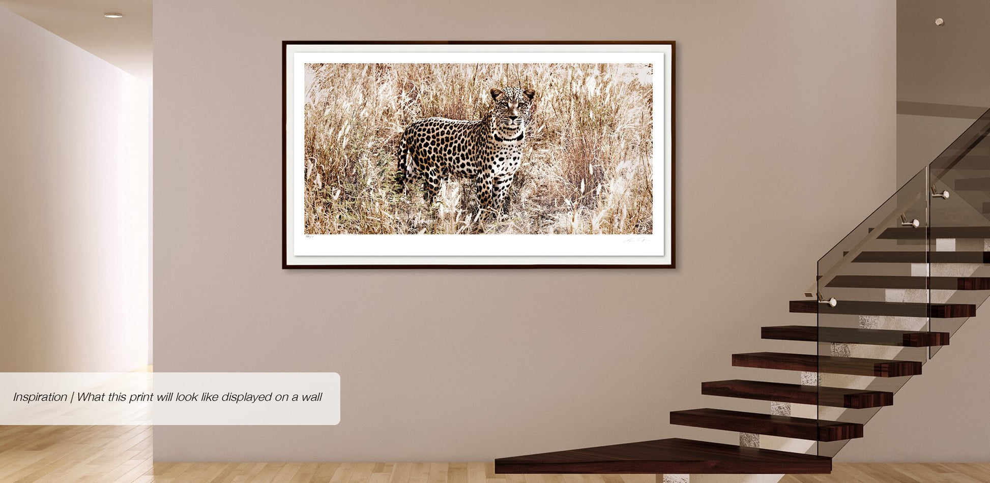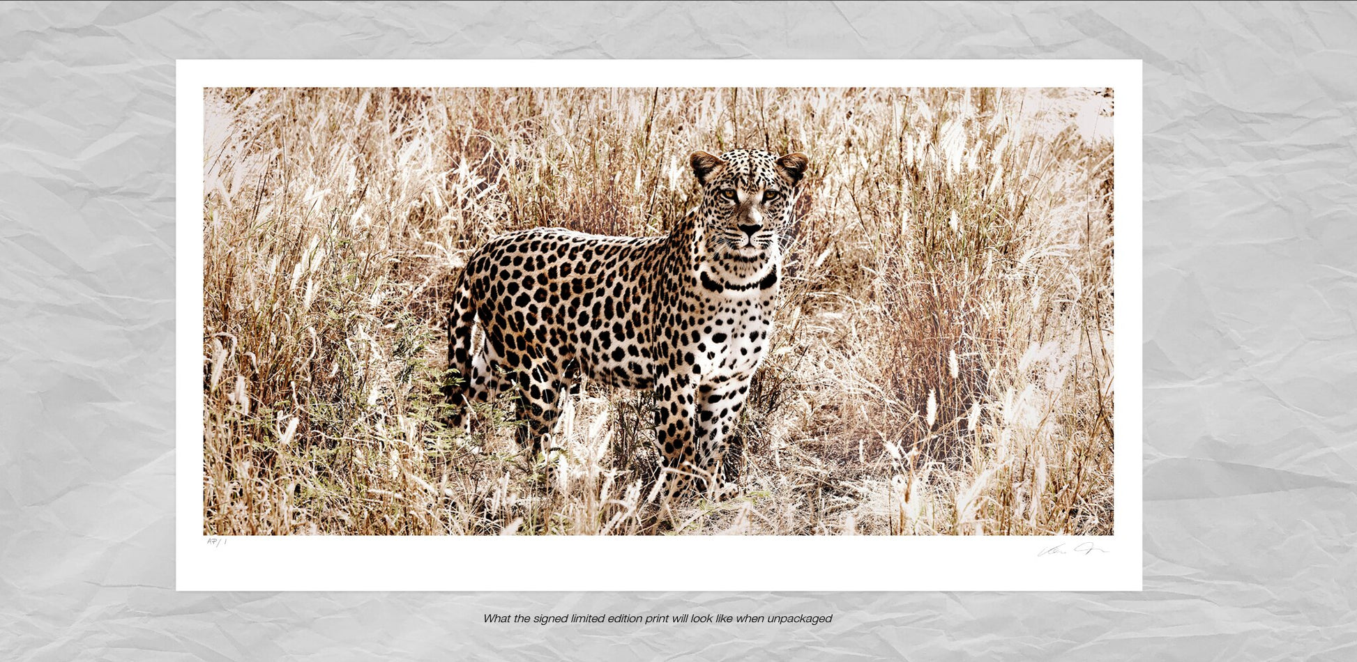 A stunning beauty! This print of a Leopard photographed in the long grass of Africa is an absolute classic.