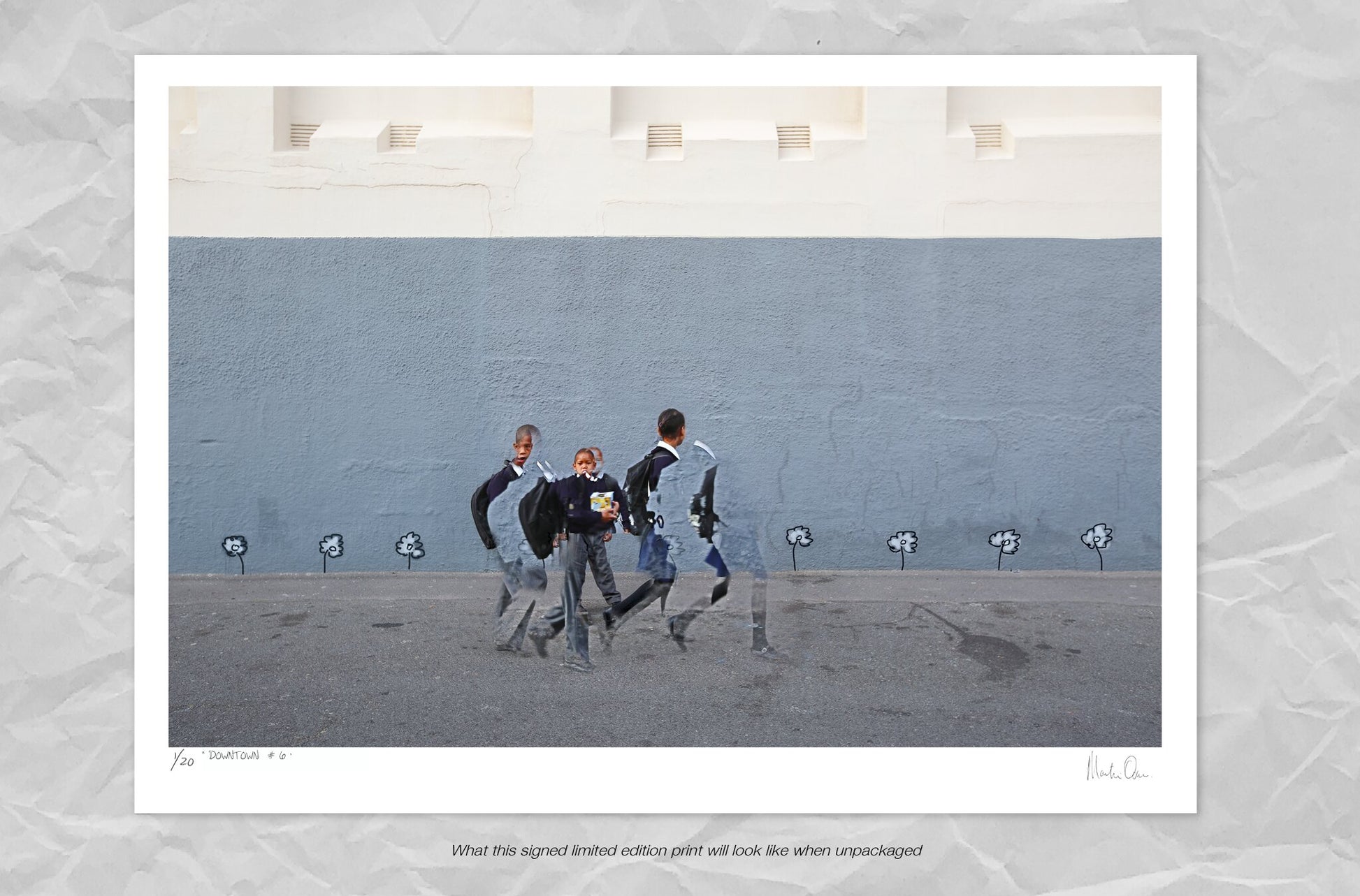 A brilliant portfolio of urban prints celebrating the energy of the inner city and downtown districts. Photographed in Woodstock, Salt River and Kalk Bay, these pictures have been captured using a camera technique known as high dynamic range, which has been combined with subject movement. The effect creates a cubist style, as the subjects are broken up into smaller outlined segments due to the misalignment of the exposures.