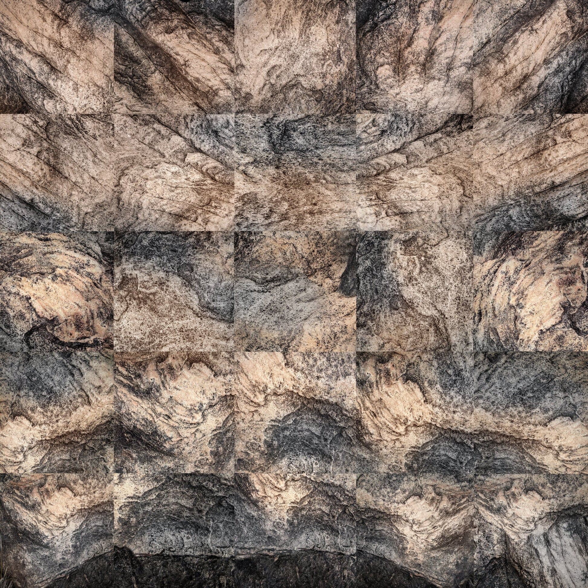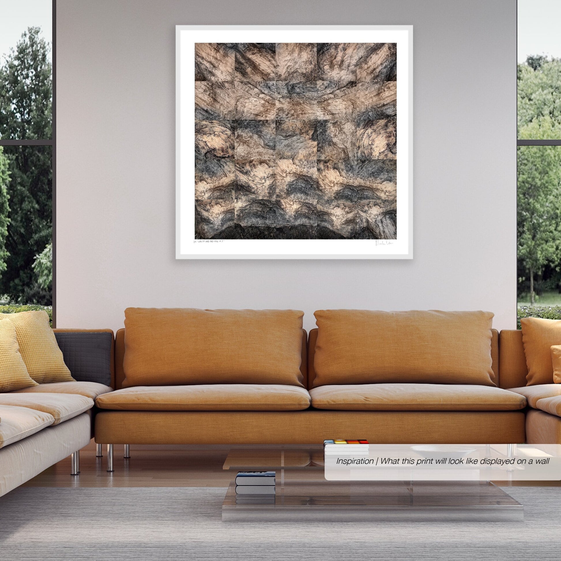This popular print forms part of an extended portfolio and has been created out of twenty-five individual pictures of rock formations, then reassembled to portray Table Mountain at the bottom, with Devils Peak and Lion's Head on either side, all under a dramatic winter sky.