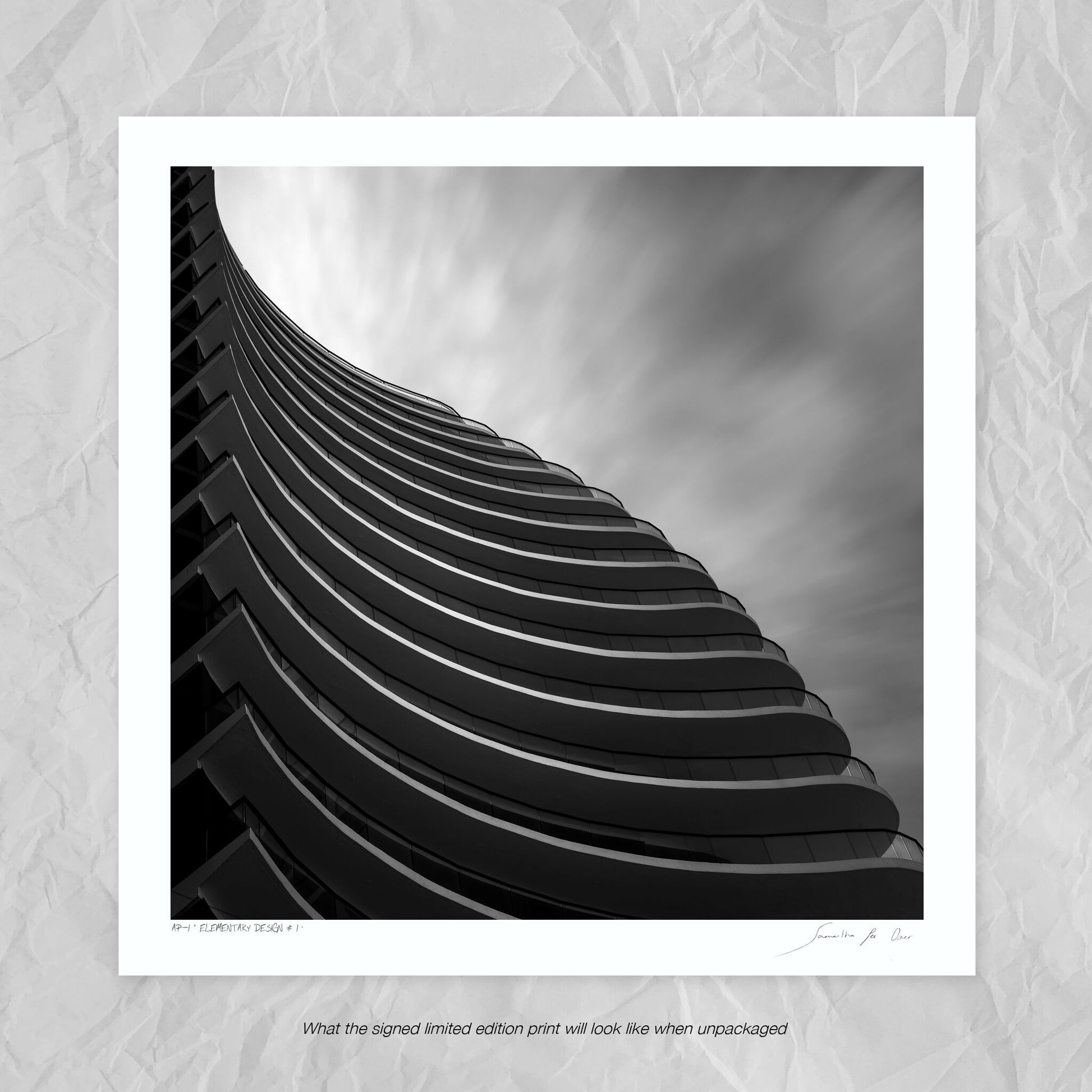 A black and white collection of simplistic architectural photography. This artwork is a celebration of minimalistic photographic art and forms part of the artists successful "Elementary Design" portfolio which is available in two print sizes each limited in edition.
