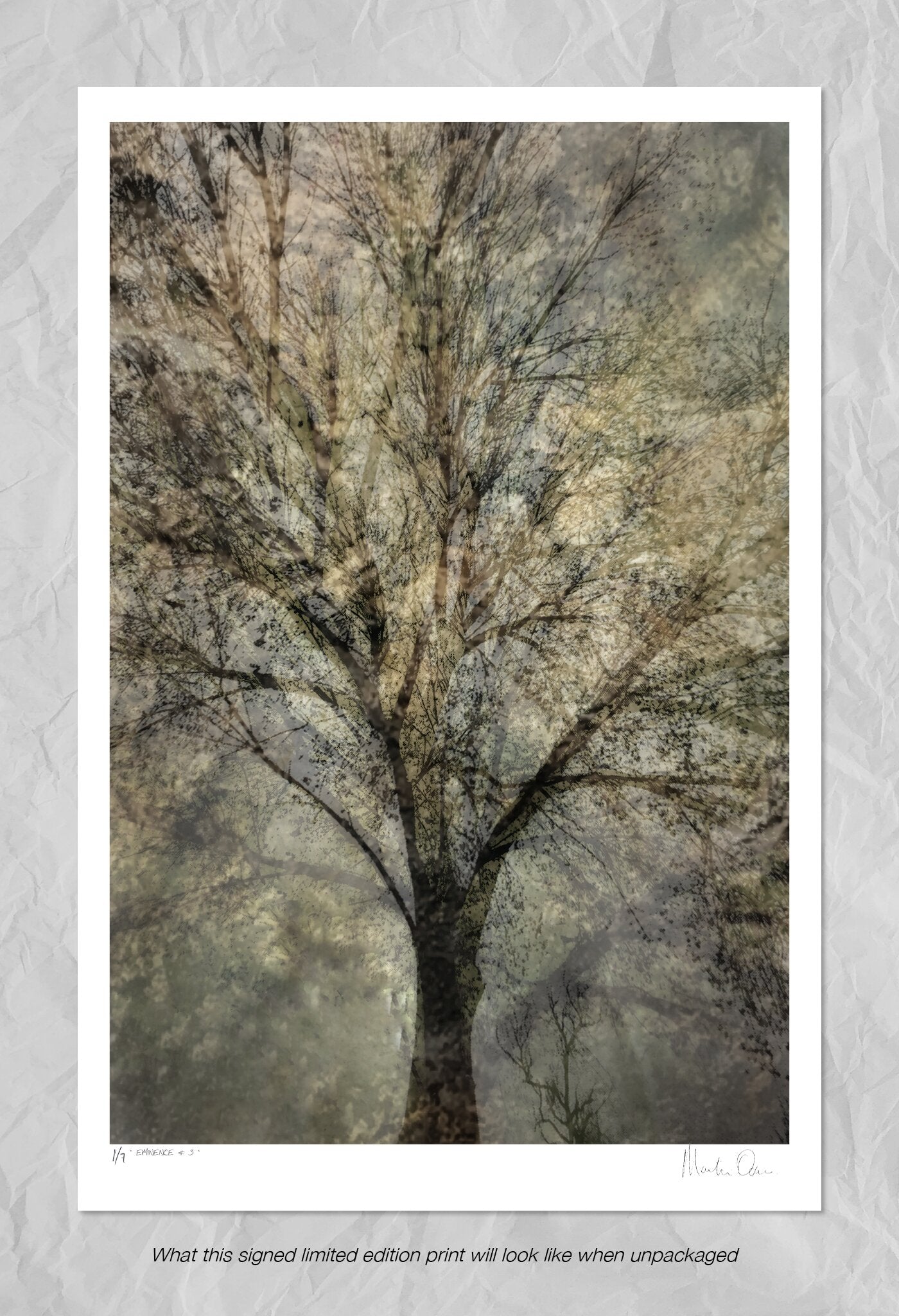 Eminence is an ethereal print collection of trees created by the artist using multiple layers and texture overlays. Although slightly abstract in approach, the prints have been created to convey a feeling of eldership, majesty and wisdom.