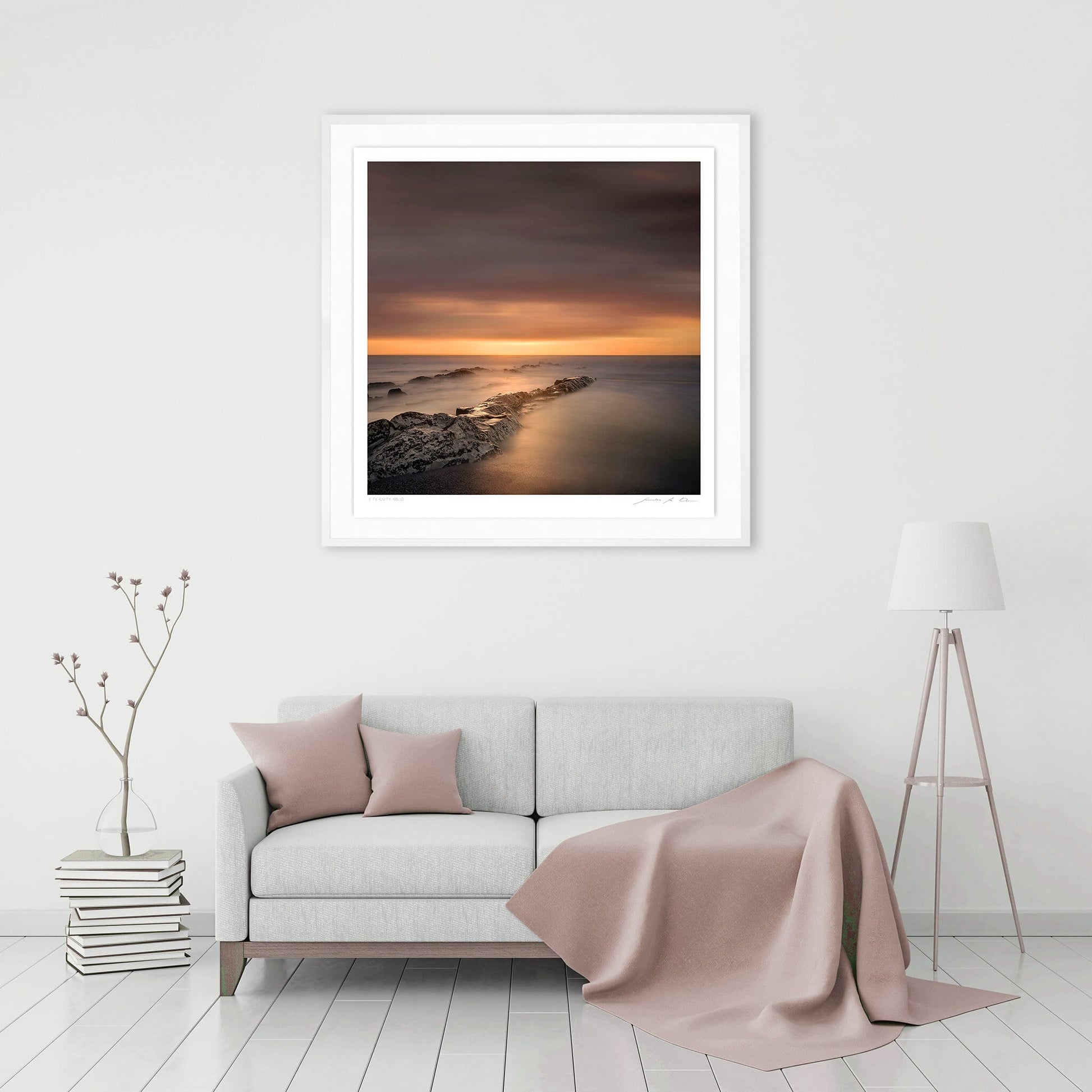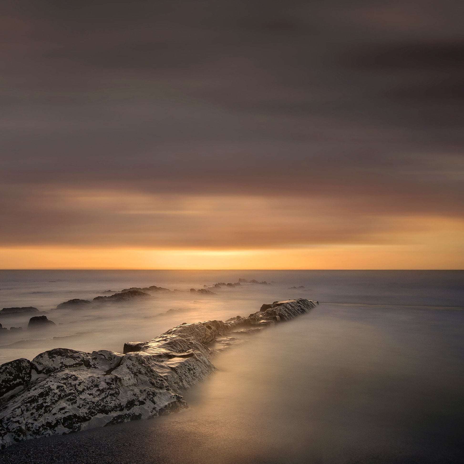 An iconic print in a minimalistic portfolio of long exposure seascape photography photographed at sunset in the Western Cape region of South Africa. This print forms part of the artists successful "Eternity" portfolio with is available in three print sizes each limited in edition: