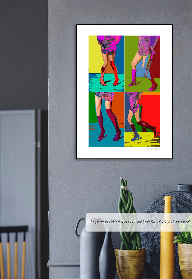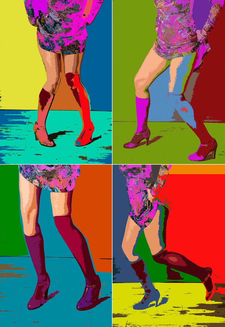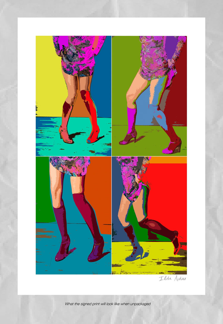 A Pop Art rendition of the artist's legs beautifully stretched to her dream length and brightly multicoloured.