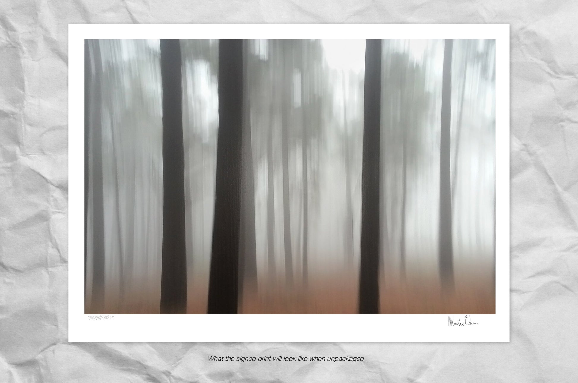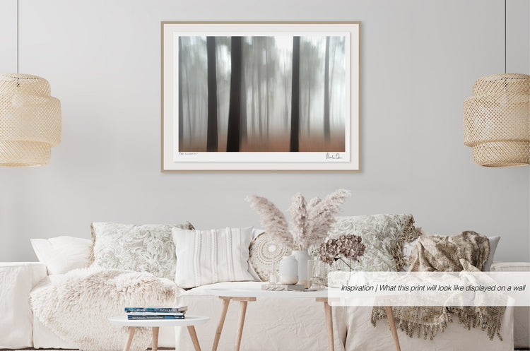 An abstract impression of a magical forest comprising of aesthetic accentuated lines and soft pastel colour. This print forms part of a complete portfolio of dreamlike landscapes.