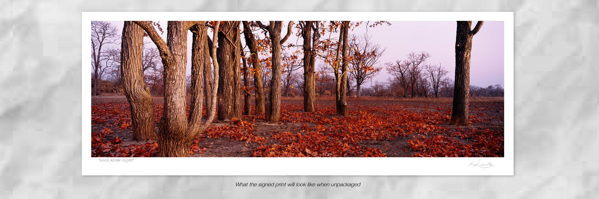 A remarkable artwork that captures the essence of autumn in a stunning composition. The carpet of autumn leaves creates a mesmerizing backdrop for this captivating scene. Koos van der Lende skillfully frames the Mopane cluster, showcasing its beauty amidst the seasonal transformation