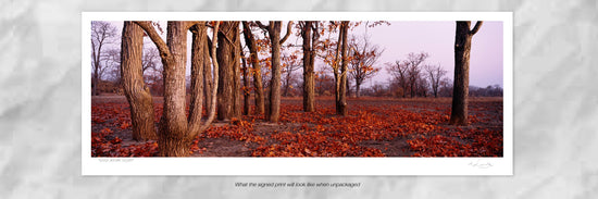 Photographed over ten years, finally cumulating into a coffee table book called "Moments of Grace", these superb fine art prints are a joy to behold. The collection was photographed on photographic film, which the artist then custom-developed in chemistry to attain the ideal contrast and colour. The slides were then drum scanned and prepared for print with reference to the original photo without any digital alteration. Editioned to twenty-five prints, this portfolio of panoramic landscapes is iconic.