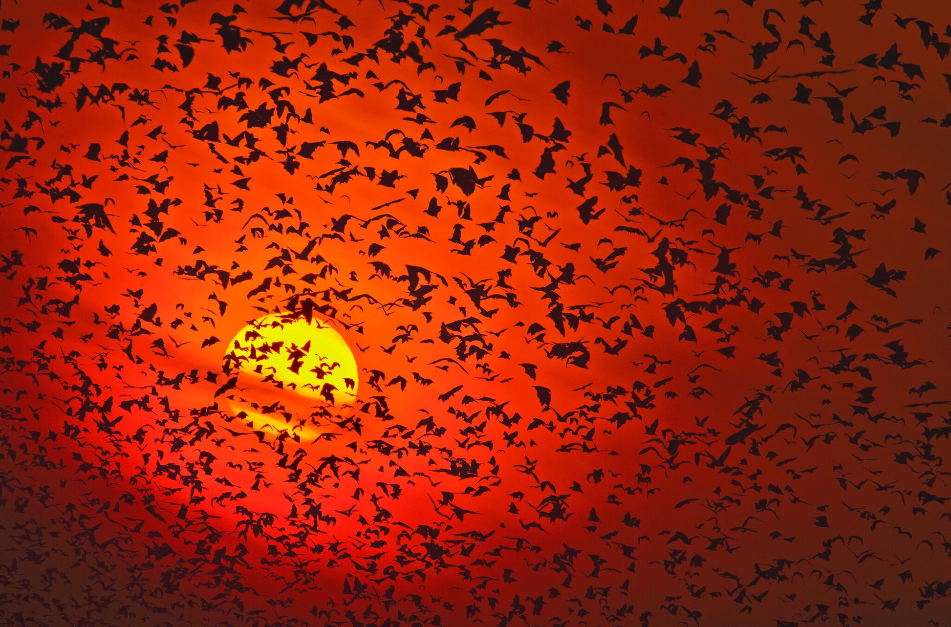 This incredible photograph was around November time at sunset when the largest mammal migration on earth takes place when up to 8 million bats move into a tiny forest in Zambia.