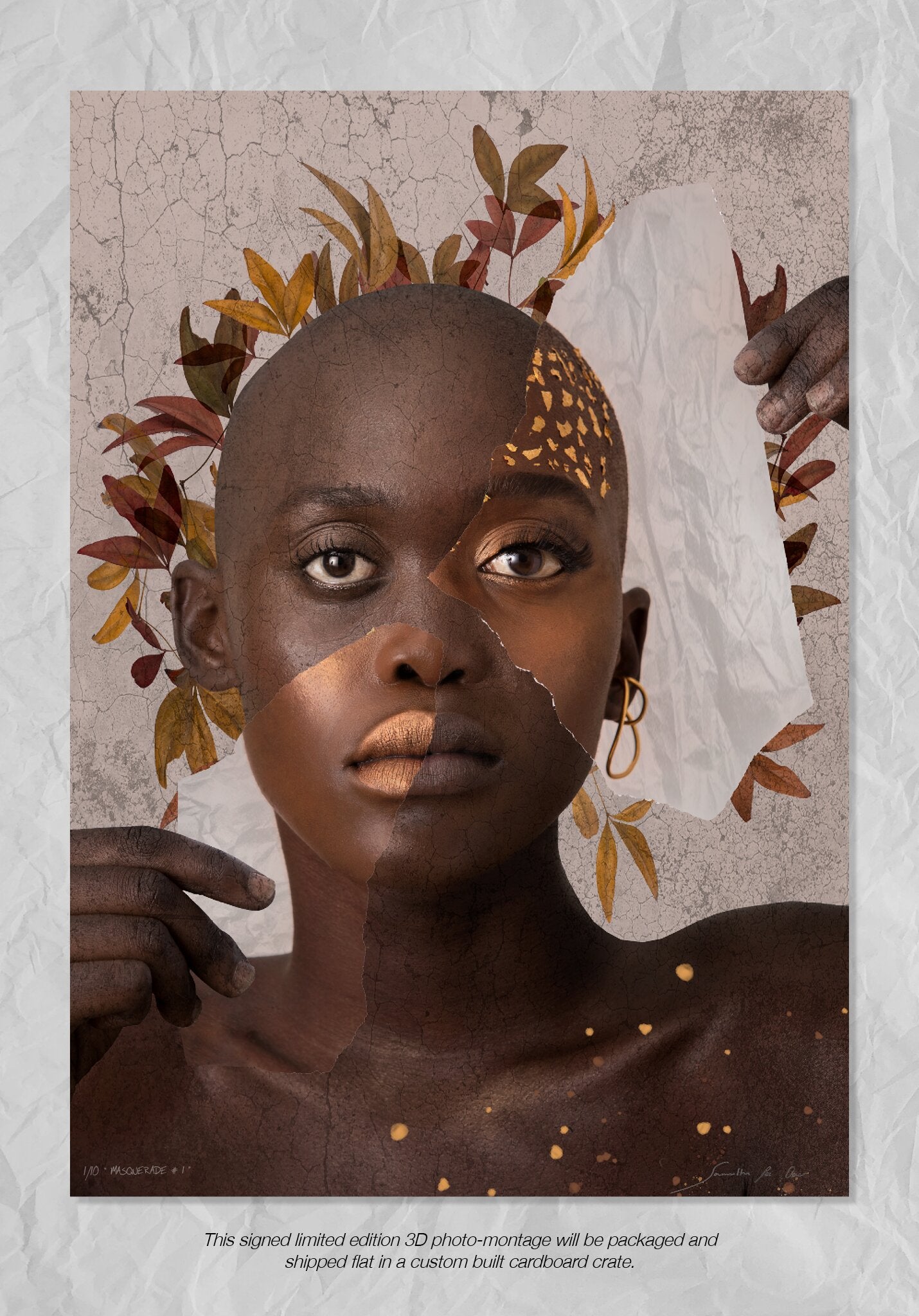 Today many people live two lives, the person they are behind closed doors and the person they are seen to be in public. Sometimes, these facades protect one from fear of disapproval, incompetence, or even hid a person trials and truths. In this artwork, the artist suggests that we should never forget that true beauty lies within, and judgement is merely an opinion. We should learn to embrace our individuality and wear our scars with pride. In this artwork, Samantha photographed her sister Leeanne as an inspiration to others about her incredible courage and self-belief.