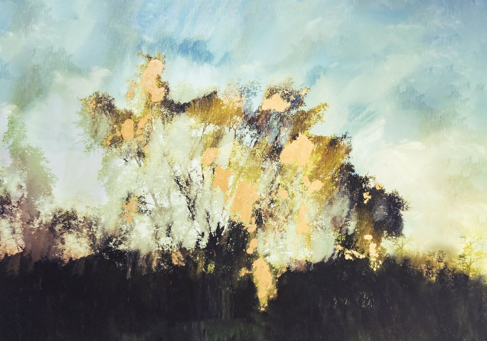 This beautiful abstract mixed media artwork was created using in-camera multiple exposures and finished off with a touch of gold leaf.