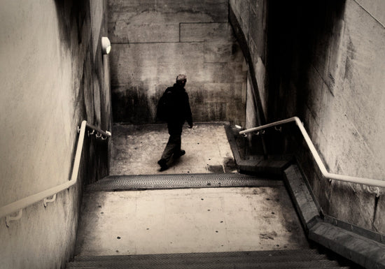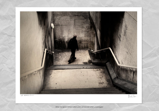 Photographed in the quiet hours before dawn, this image captures a solitary figure descending into the London Underground. The stark geometry of the stairs and walls frames the man in black, creating a sense of anticipation and stillness. It was a fleeting moment that felt almost staged, as if the city itself had decided to complete the scene for me.