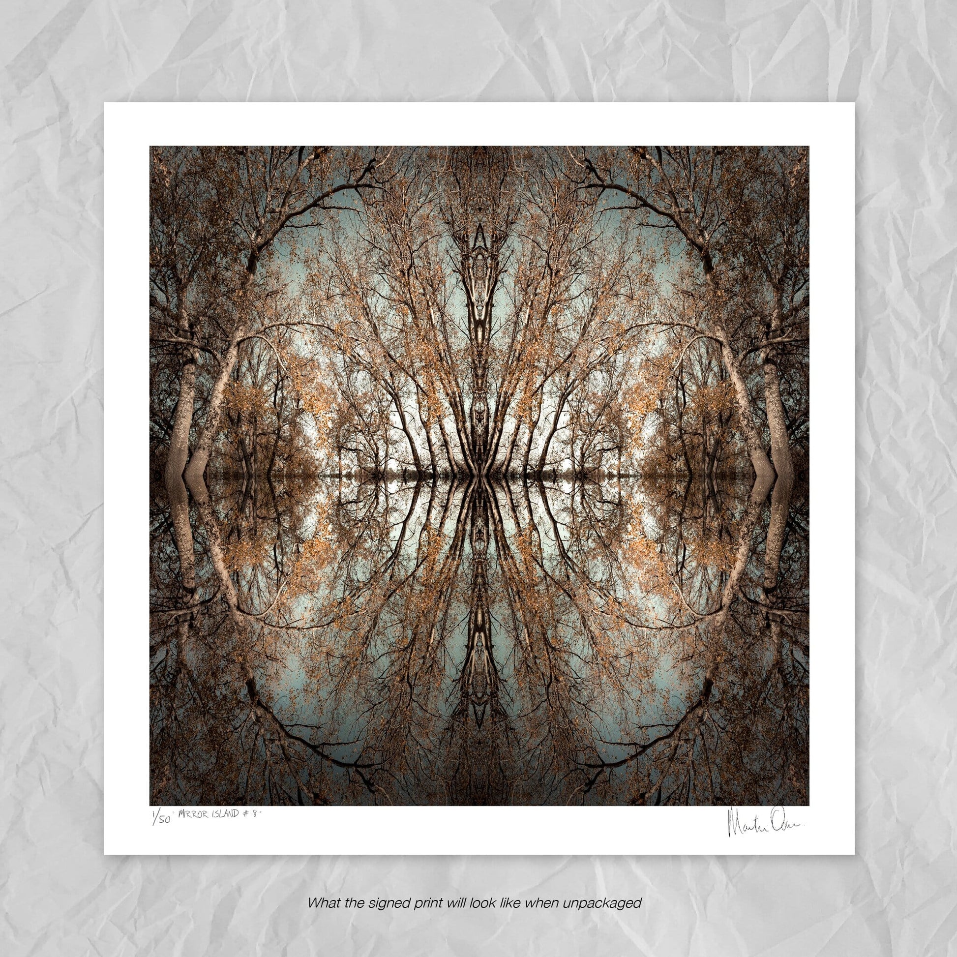 A collection of illusional islands surrounded by water, these artworks have been created through the process known as mirror montaging. Prints are available in two sizes and are printed on museum-quality fine art paper.
