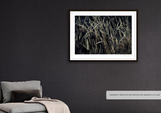 A dark, simplistic low key impression of wild grass photographed in early morning light.