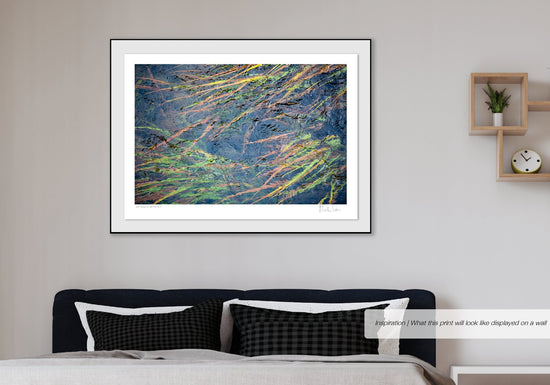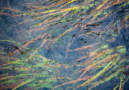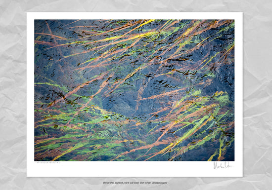 A beautiful simplistic impression of the patterns formed as water flows gently over reeds in a crystal clear stream.