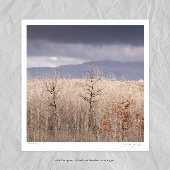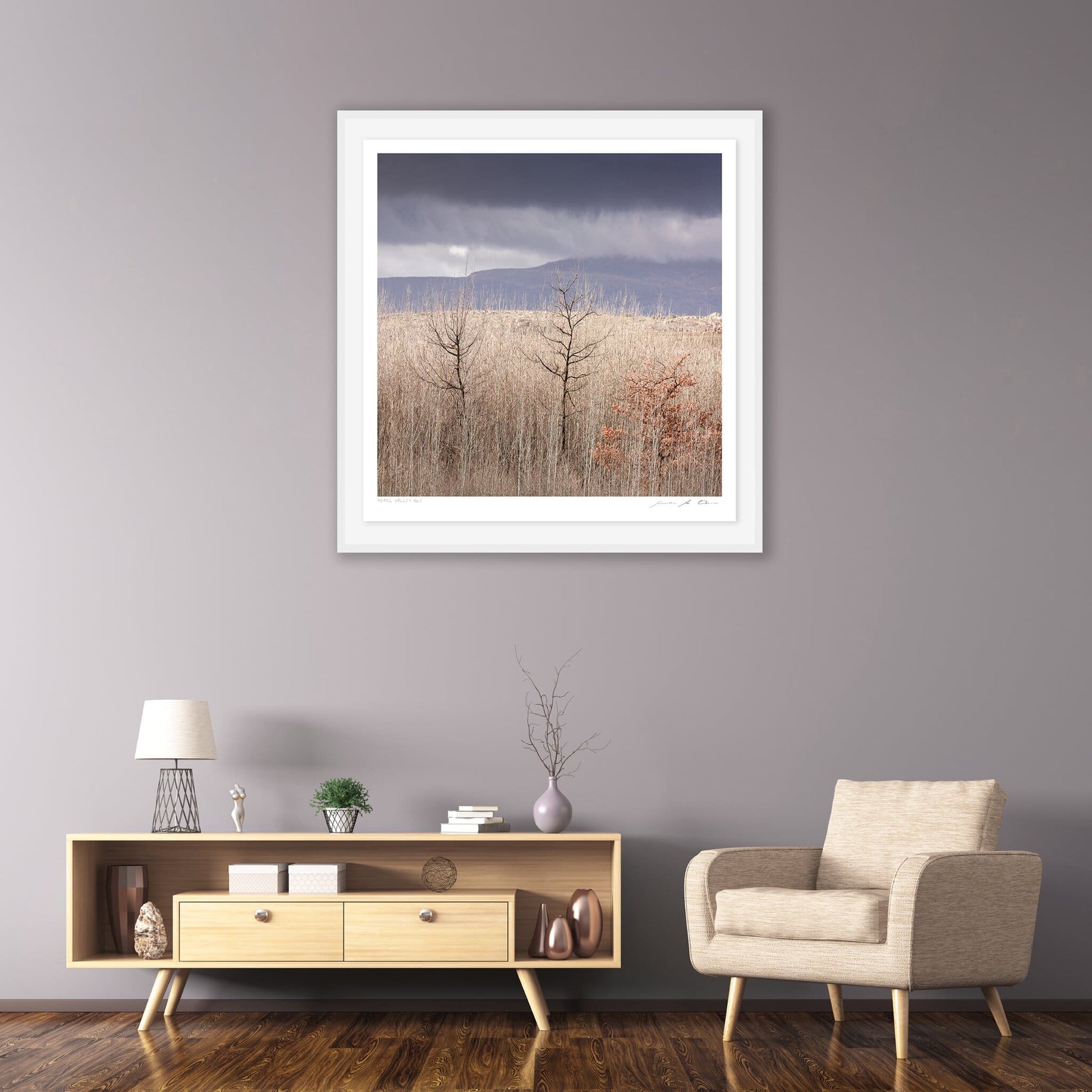 An incredible fine art print was taken of stark black trees growing in tall African grass. Captured in the soft pastel tones the photograph was taken in the Koue Bokkeveld region of the Western Cape during winter.