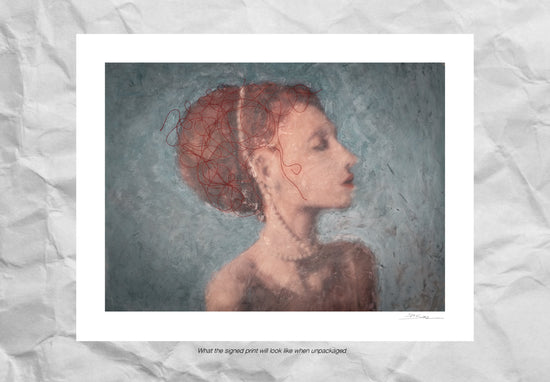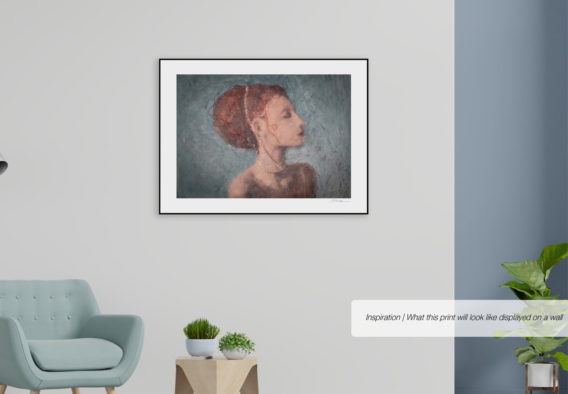 This piece portrays the complexity of human beings. Often it is believed that one feature is enough to characterise and classify a person, however, humans are intricate. The beauty of the woman is guessable but elusive. When viewing the artwork closely you are still distant, and when you are distant you nevertheless feel close. The obvious impenetrability, the intangible, the unclear, the secrecy, and the mystery behind this picture provokes different emotions within the observer. The image functions as a projection screen for one’s own desires and hopes, anxieties and fears, feelings and values. One’s own thoughts and ideas are reflected in the person portrayed. Finally, the observation becomes ruminant, and the observer comes to terms with their emotions.