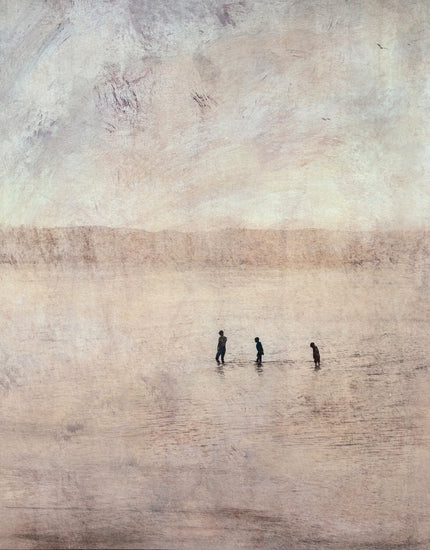 Samantha Lee Osner's collection, "Précis," combines minimalist photography with mixed media overlays to explore the relationship between humanity and nature. Several pieces portray people as tiny figures in expansive landscapes, capturing the ethereal charm of the natural world and underscoring the unimportance of personal struggles in the broader scope. The collection encourages viewers to reflect on the allure of the environment and appreciate the simplicity and serenity of nature.
