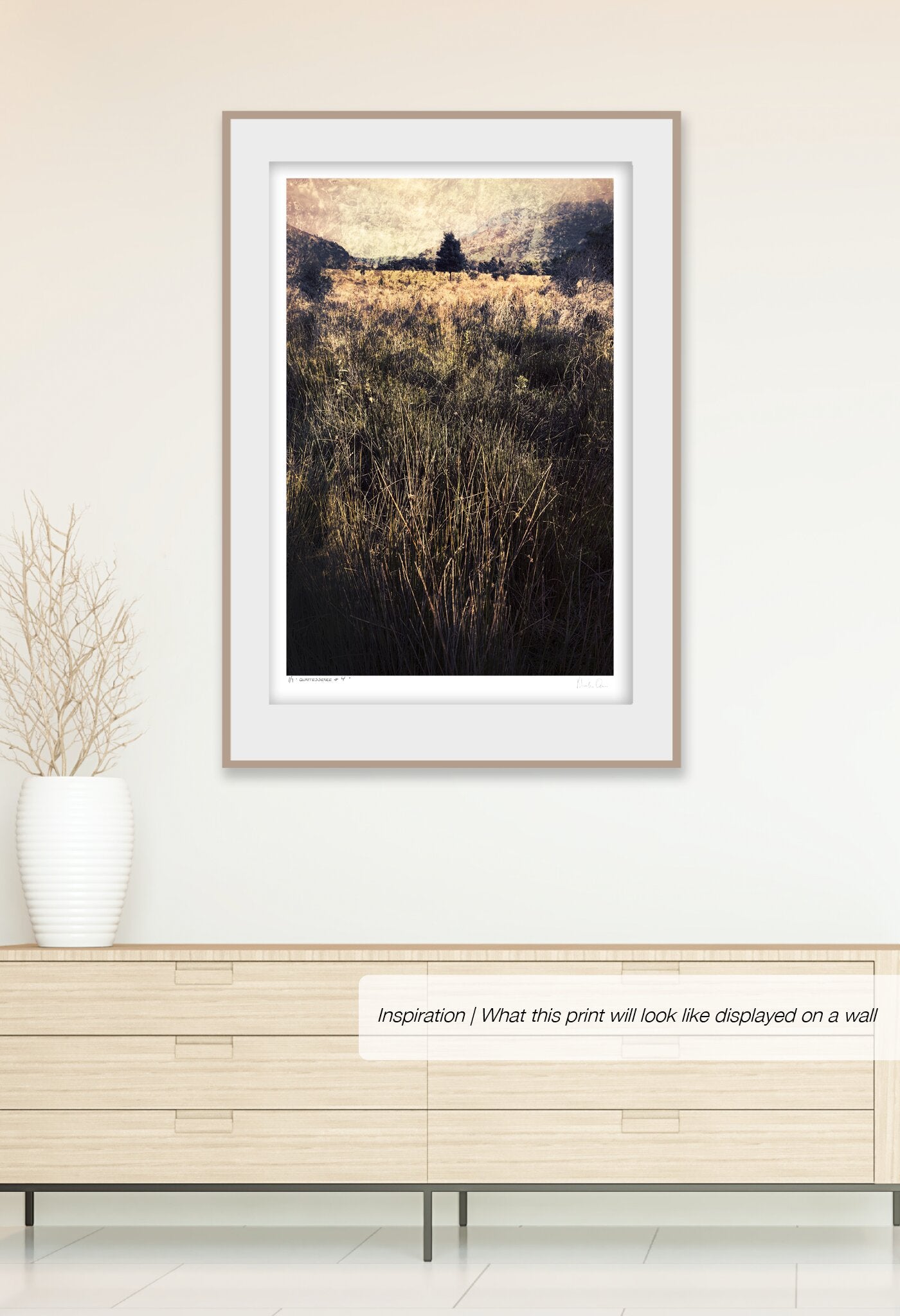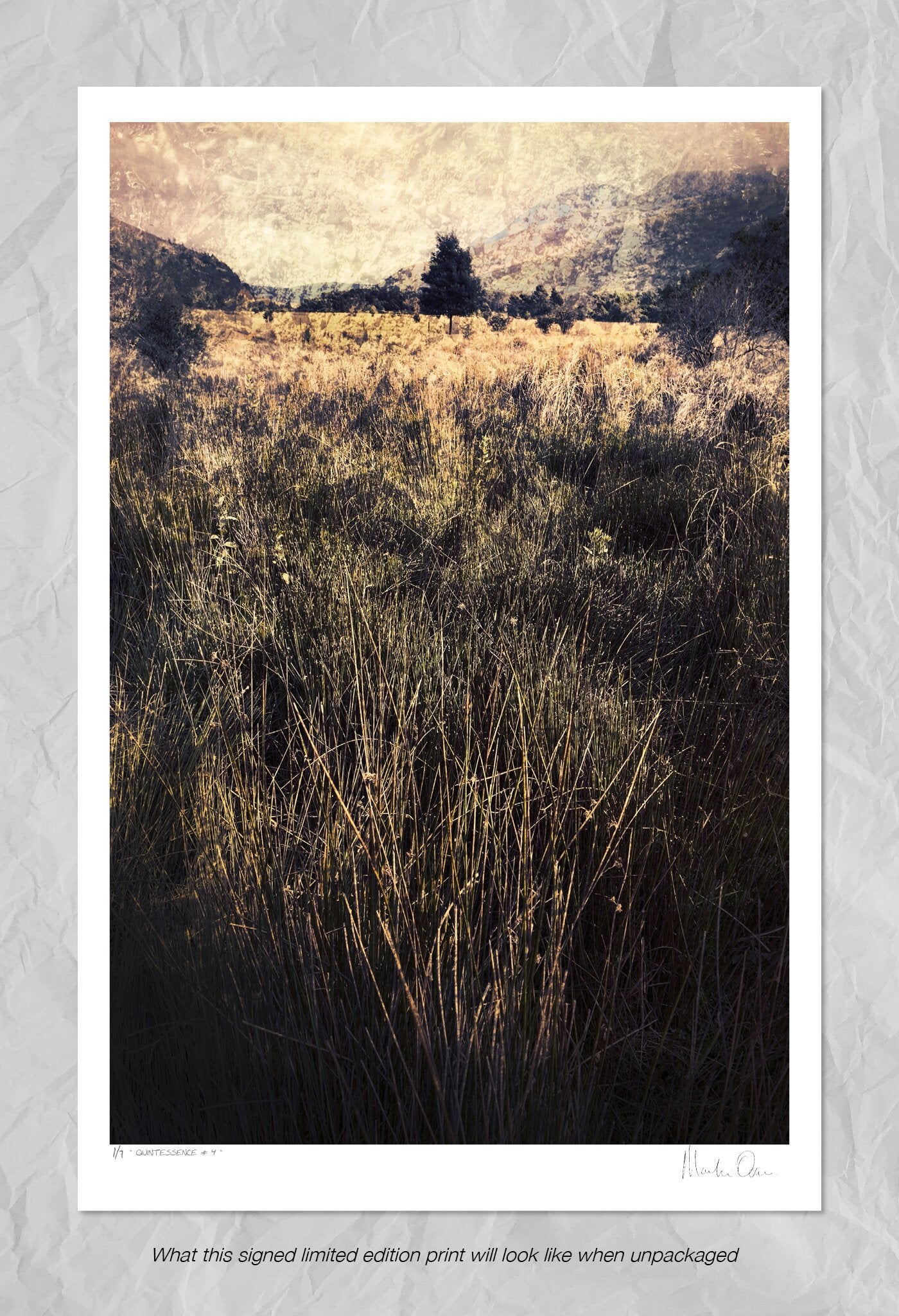 Quintessence is an ethereal print collection of trees created by the artist using multiple layers of similar landscape impressions and earthly texture overlays. An illusionary place of intimate mood and tranquillity.
