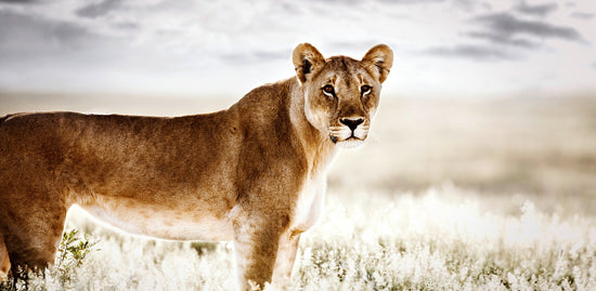 This majestic portrait of of a lioness was photographed in the long grass of Etosha Namibia.
