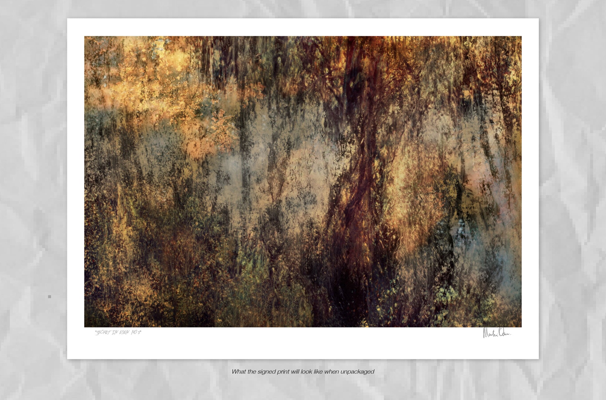 A Mattise impression created in-camera. This low-edition abstract print exudes mystery and mysticism. Embossed and accompanied by a certificate of authenticity.