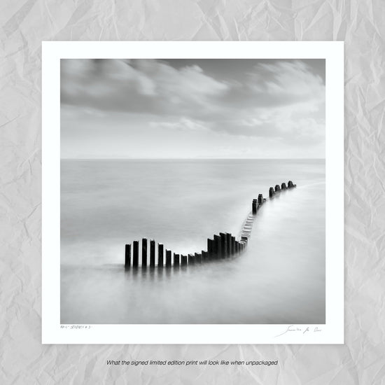 A captivating black and white print of a concrete design installation in the ocean, this artwork is a celebration of minimalistic photo art and forms part of the artists successful "Serenity" portfolio with is available in two print sizes each limited in edition.