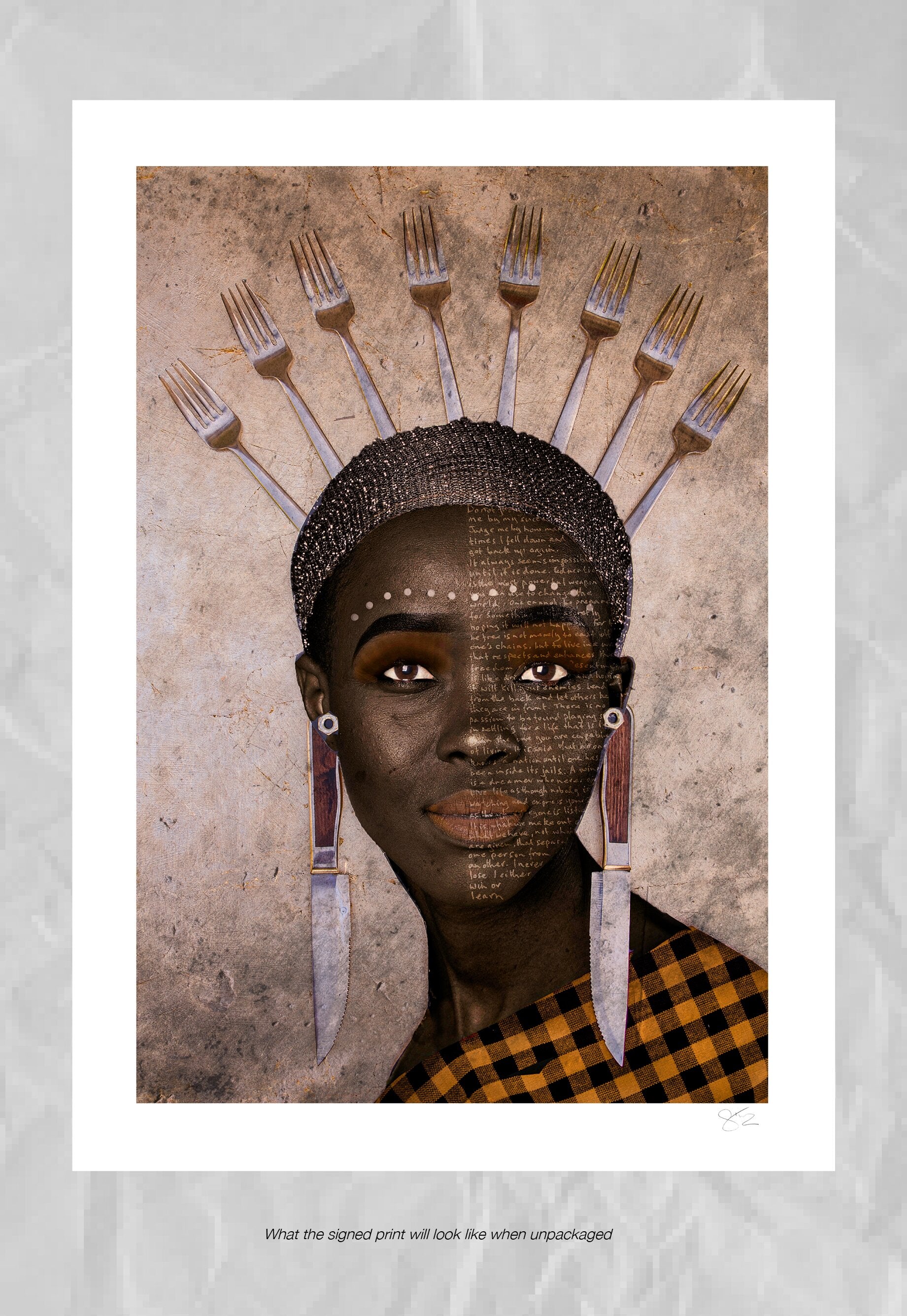 In this extraordinary multi-media artwork, quotations by the great Nelson Mandela are included to adorn the face of this proudly South African. After that, additional 3D artefacts were introduced to create this unique artwork.