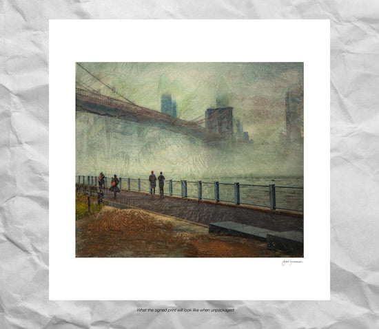 It was like an Armageddon moment when we came around the corner and saw the Brooklyn Bridge literally vanishing into a thick, dark cloud. I was overcome by a sense of awe and eeriness but the moment was brief because just a couple of seconds later, the cloud lifted ever so slightly and you could see the direction in which the bridge was meant to go. Moody moments like these are mysterious and magical, not predictable and obvious.