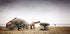 Giraffe grazing off the tops of thorn trees in the open grasslands of Africa. Harmony between the animals, the land and a celebration of wide-open spaces.