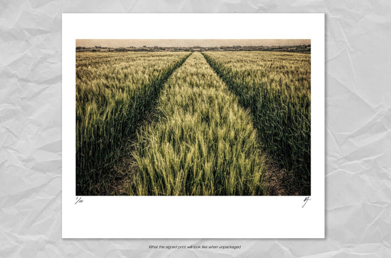 WHEATFIELD WITH TRACTOR TRACKS