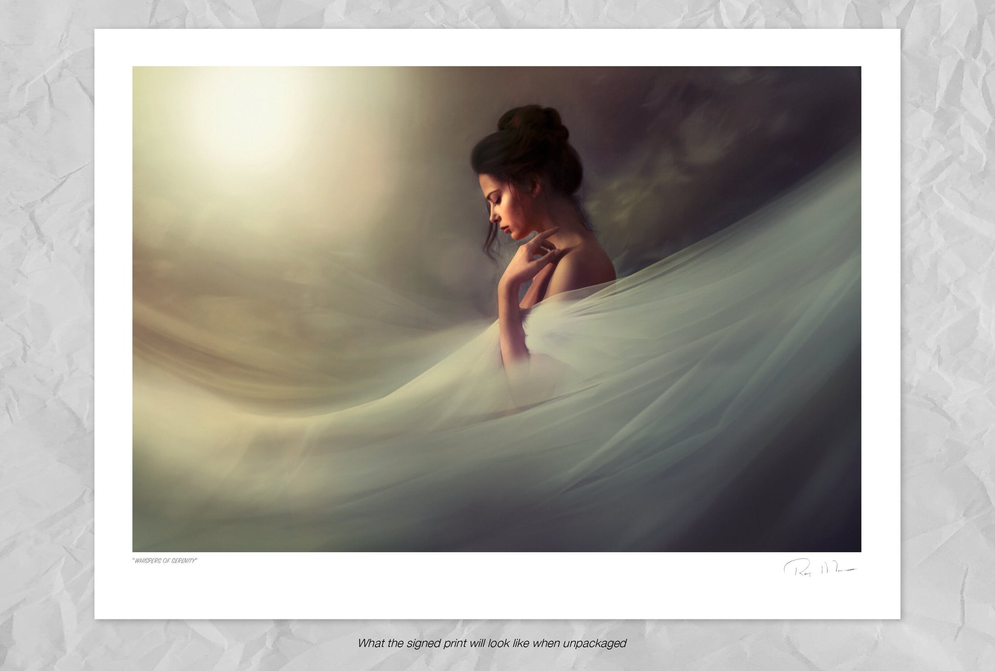 In a poignant reverie, soft lace cradles whispers of serenity, an introspection's grace. Celestial realms unfold in ethereal space, where vulnerability dances with contentment, and inner serenity finds its place.